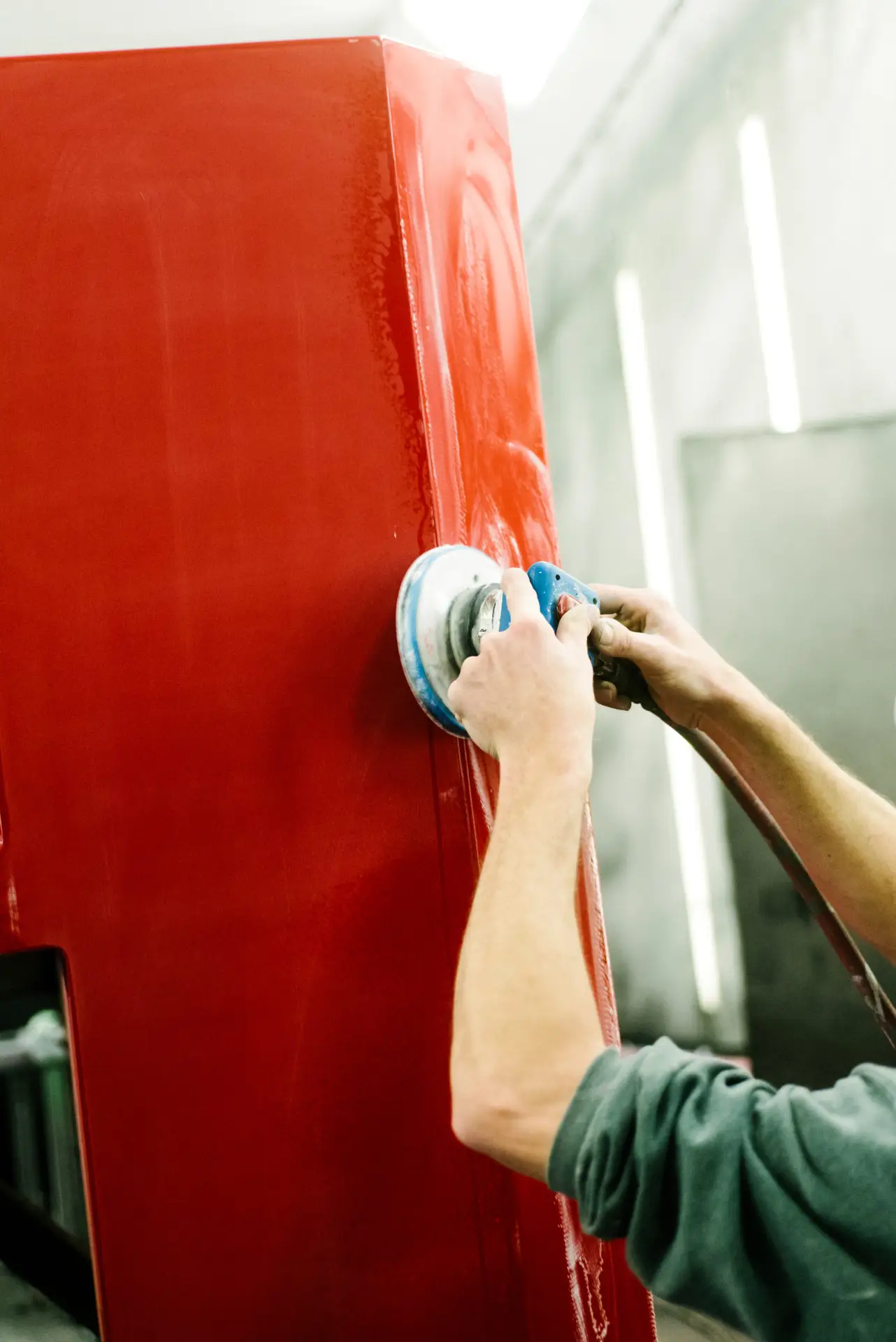 During the 6th step in the painting process, we color-sand your apparatus to smooth out the clear coat to create a mirror-like finish when buffed out.